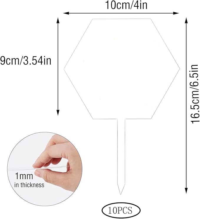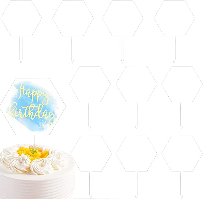 10 Pcs Clear Acrylic Cake Toppers – Blank Hexagon Shape DIY Cake Decoration for Weddings, Birthdays & Parties