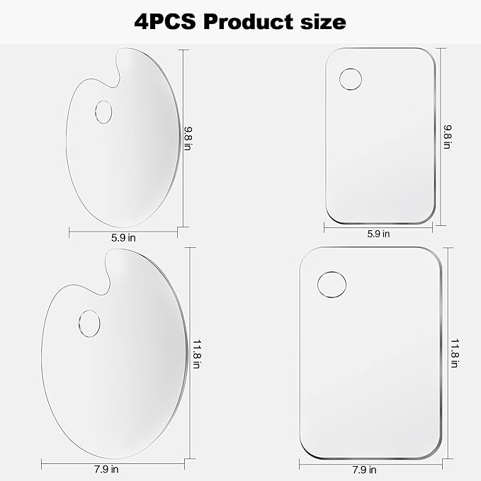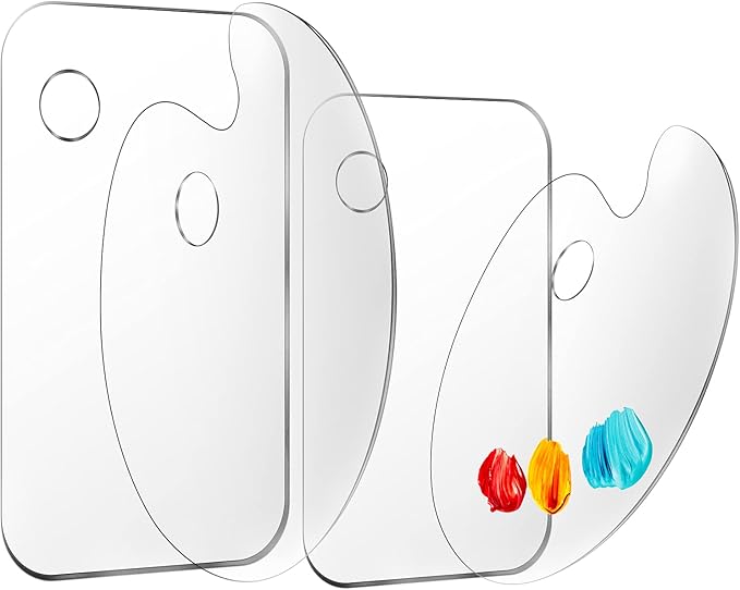 Upgrade your art supplies with this 4-piece set of clear acrylic paint palettes, designed for both beginners and professional artists. The transparent, non-stick surface makes mixing colors effortless while ensuring easy cleaning after use.