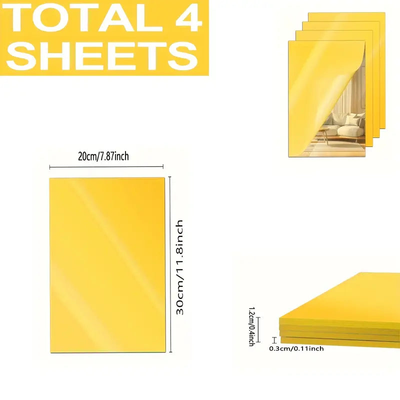 4pcs Mirrored Acrylic Sheets – Reflective Mirror Boards for Home & Commercial Use