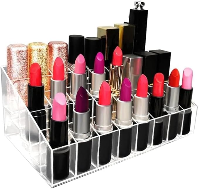40-Slot Clear Acrylic Lipstick Holder – Makeup Organizer & Display Stand