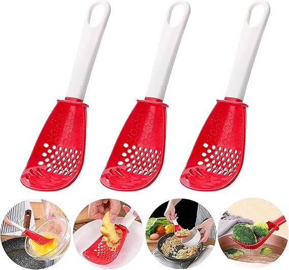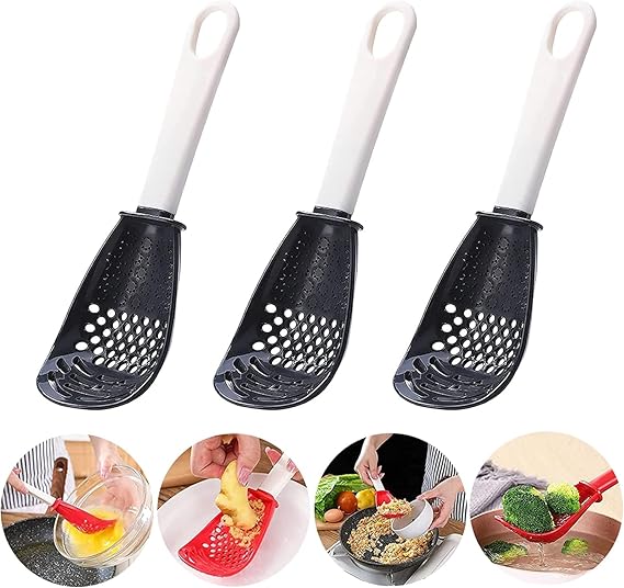 6in1 Multifunctional Cooking Spoon - Kitchen Gadgets Strainer for egg yolk Separator- Grater Masher- Colander Skimmer Scoop- for Mashing, Grating, Draining, Heat Resistant - 3 Pack (Color Mixing)