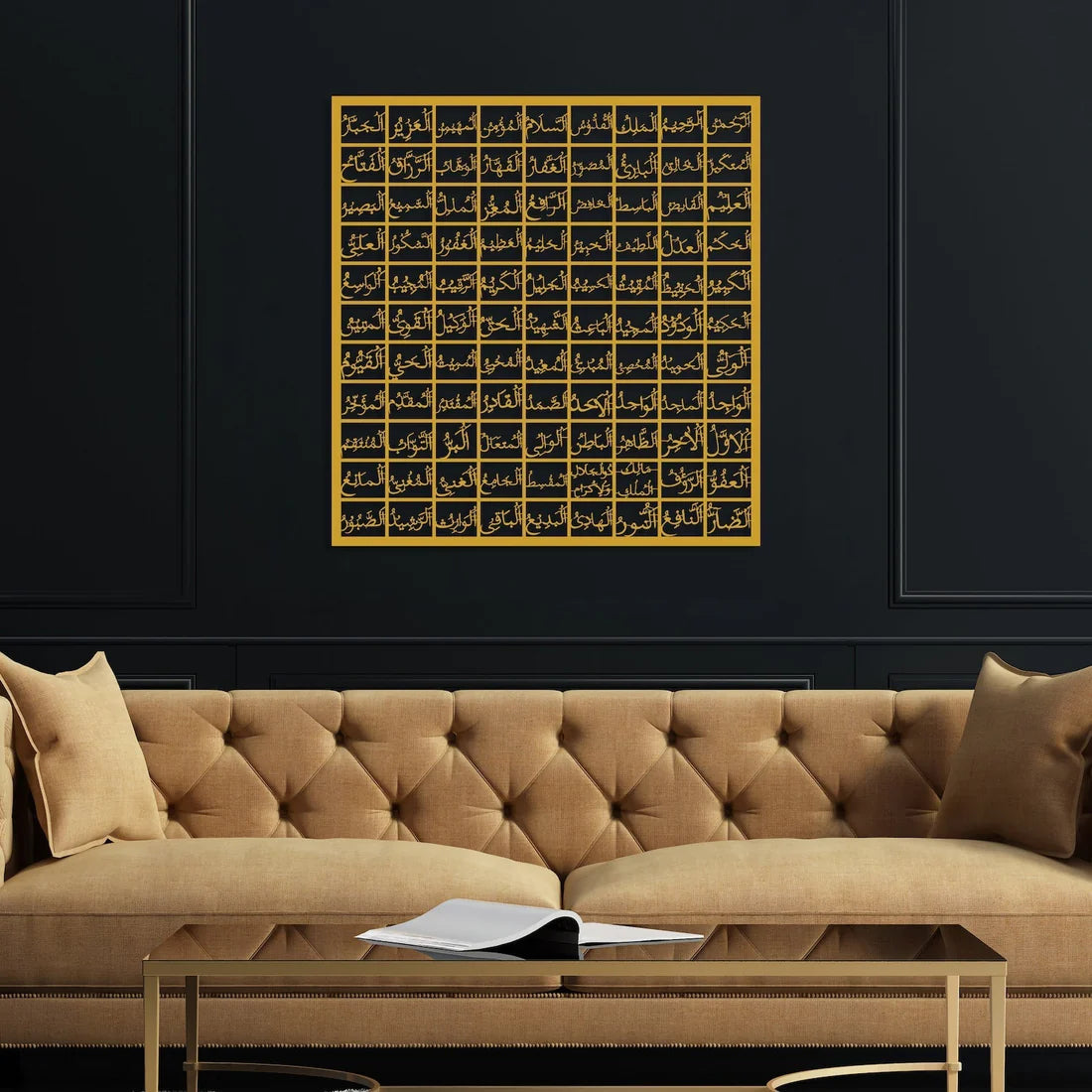 - Elegant Calligraphy: The 99 names of Allah are beautifully displayed in detailed Arabic script, creating a powerful and visually striking centerpiece.