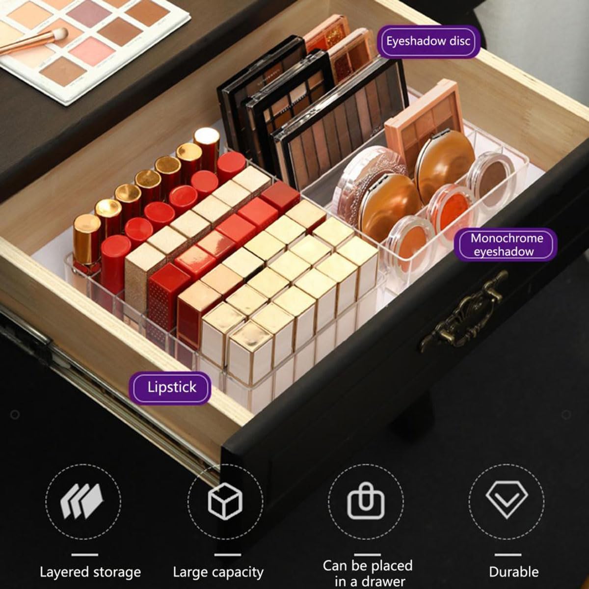 Acrylic Cosmetic Storage Display Boxes, Makeup Organizer 7-Compartment Storage For Eyeshadow, Contour Kits, Blush For Dresser & Vanity