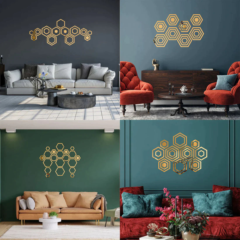 Acrylic Hexagon Ring Mirror Wall Stickers