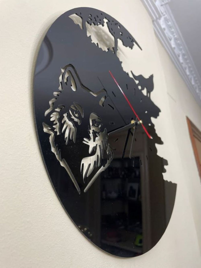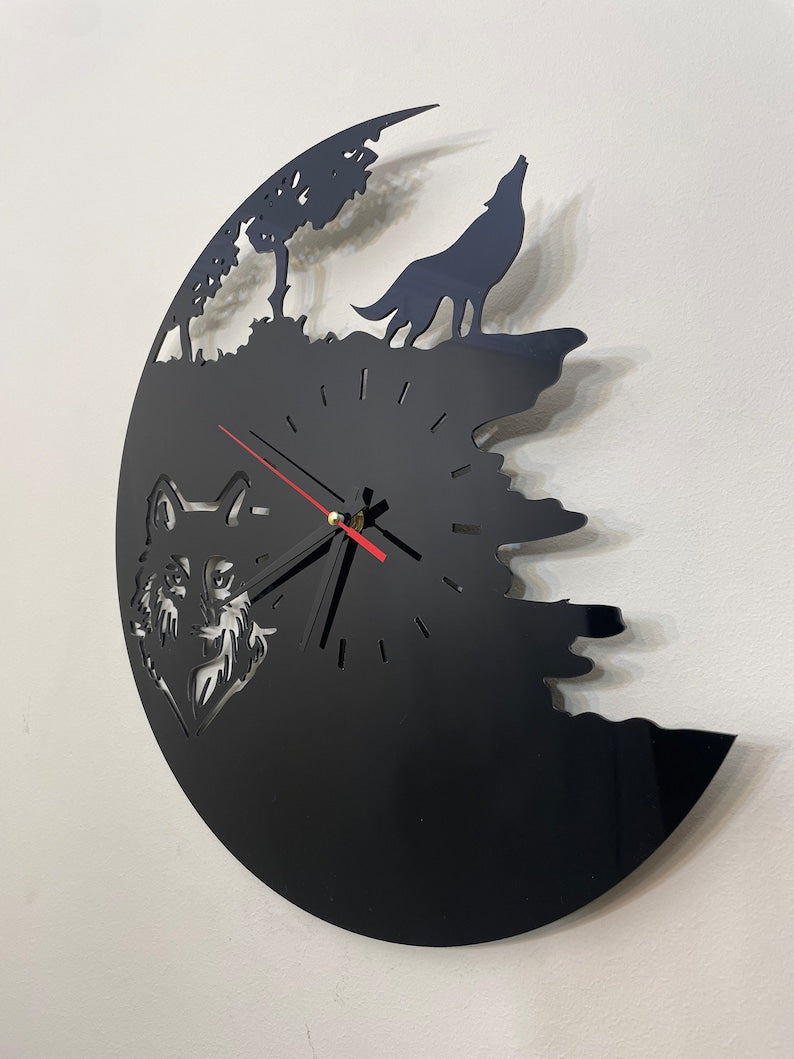 Black Wolf Acrylic-Like-Glass Wall Clock