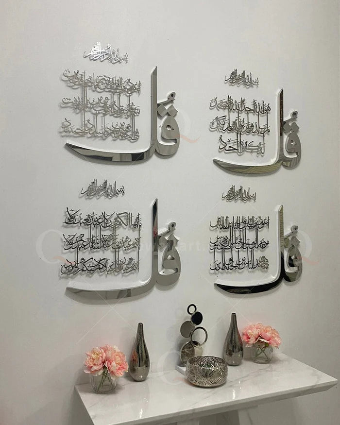 Luxury Set of 4 Quls Surah Al Ikhlas, An-Nas, Al Falaq, Al Kafirun, Acrylic islamic wall art new home decor