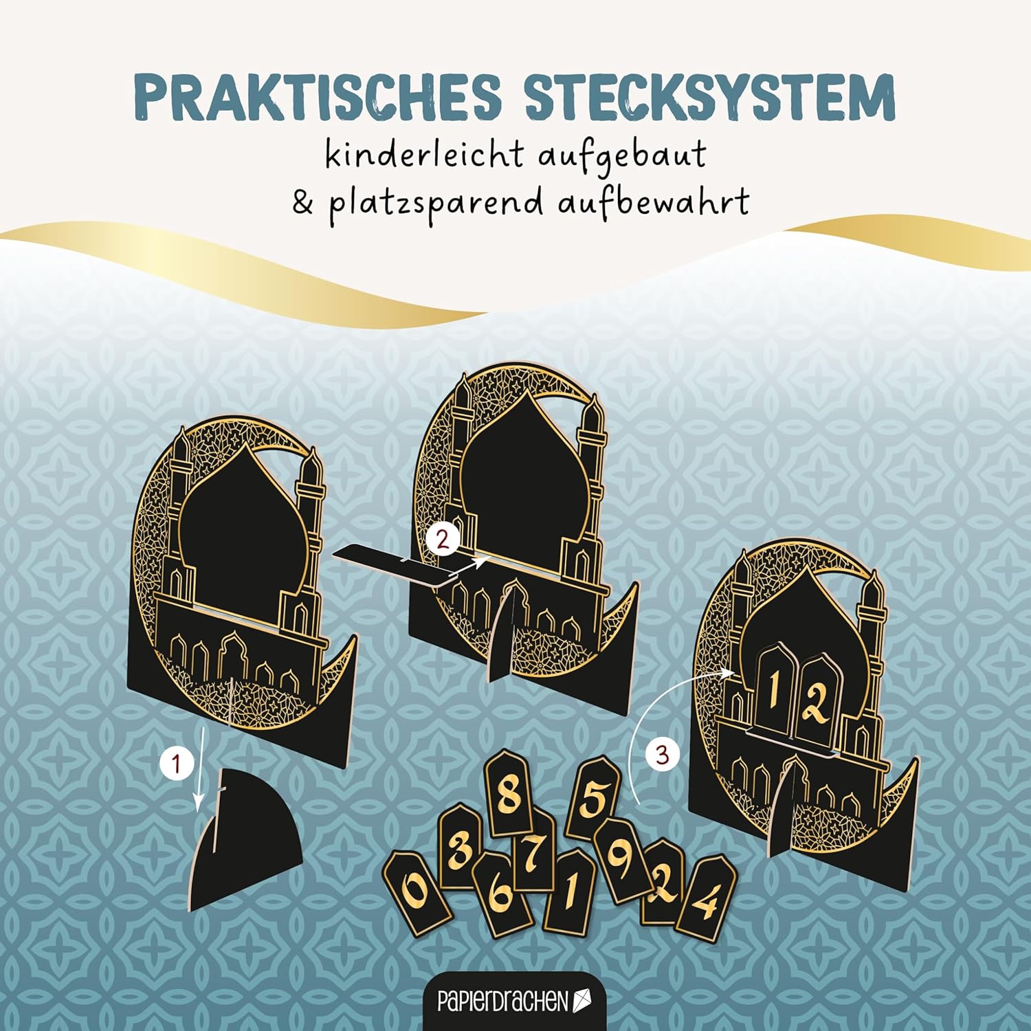 Papierdrachen Ramadan Countdown Wood – for Standing – Black Varnished – Decoration – Sugar Festival Set 02