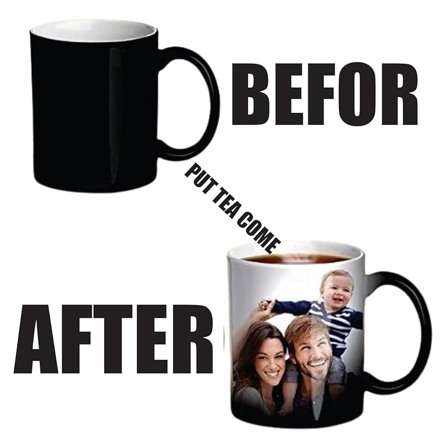 This color-changing mug is the perfect customized gift for birthdays, anniversaries, holidays, or just because. When cold, the mug appears black. Pour in hot liquid, and like magic, your custom photo, name, or message is revealed! Order now on WhatsApp: +971 50 801 0992