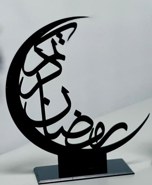 Enhance your Ramadan table setting with this elegant Ramadan Crescent Dessert & Snack Stand, thoughtfully designed to combine functionality with Islamic aesthetics. Crafted in a sleek and durable black finish, this decorative set features a beautifully shaped crescent moon adorned with Arabic calligraphy, symbolizing peace, blessings, and the spiritual essence of Ramadan. Paired with a lantern-inspired two-tier stand, it offers a stylish way to present desserts, dates, sweets, dry fruits, or snacks during iftar and sehri.