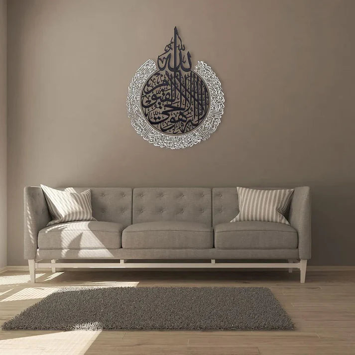 Shiny Large Acrylic Ayatul Kursi, Islamic Wall Art, Gold, Silver Arabic Calligraphy, Modern Islam Decorations