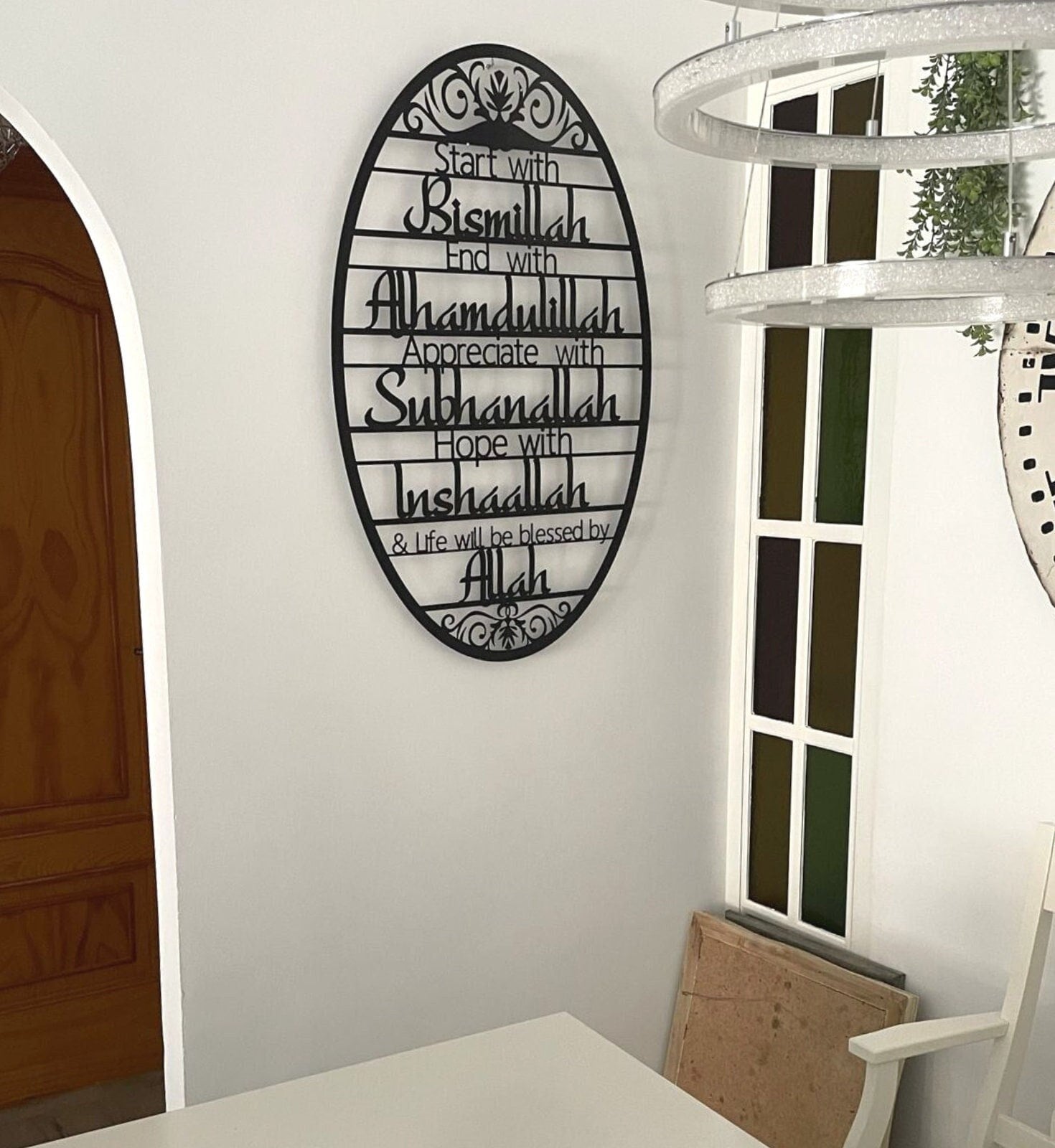 Introducing our exquisite "Start With Bismillah Acrylic Islamic Wall Art," an essential piece of decor for anyone looking to infuse their living space with faith, spirituality, and elegance. Perfectly timed for Ramadan, this piece not only serves as a reminder of the importance of starting every action with the name of Allah but also as a stunning decorative element that enhances the ambiance of your home.